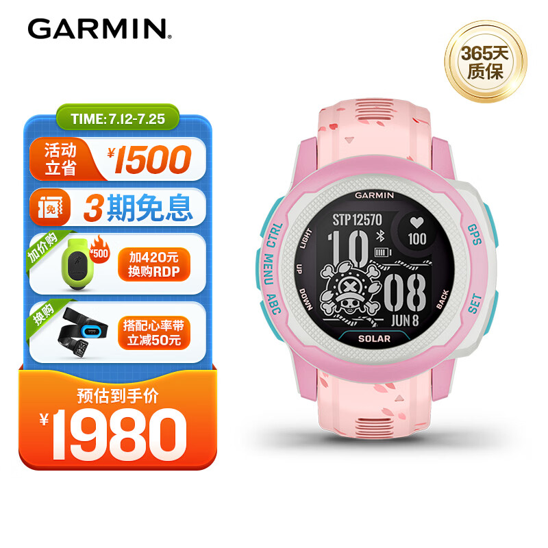 佳明(GARMIN)本能Instinct 2S ONE PIECE航海王GPS太阳能多星定位乔巴限定版价格:1980.00元!