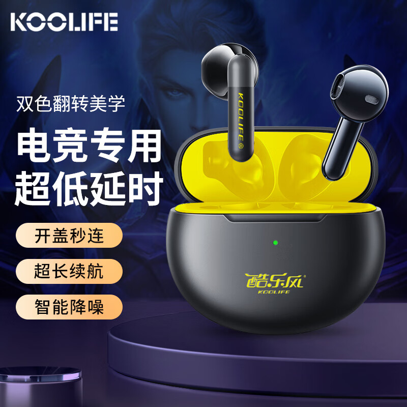 KOOLIFE蓝牙耳机真无线电竞低延迟游戏耳机入耳式跑步运动适用苹果华为小米手机通话降噪高音质音乐耳塞价格:99.00元!