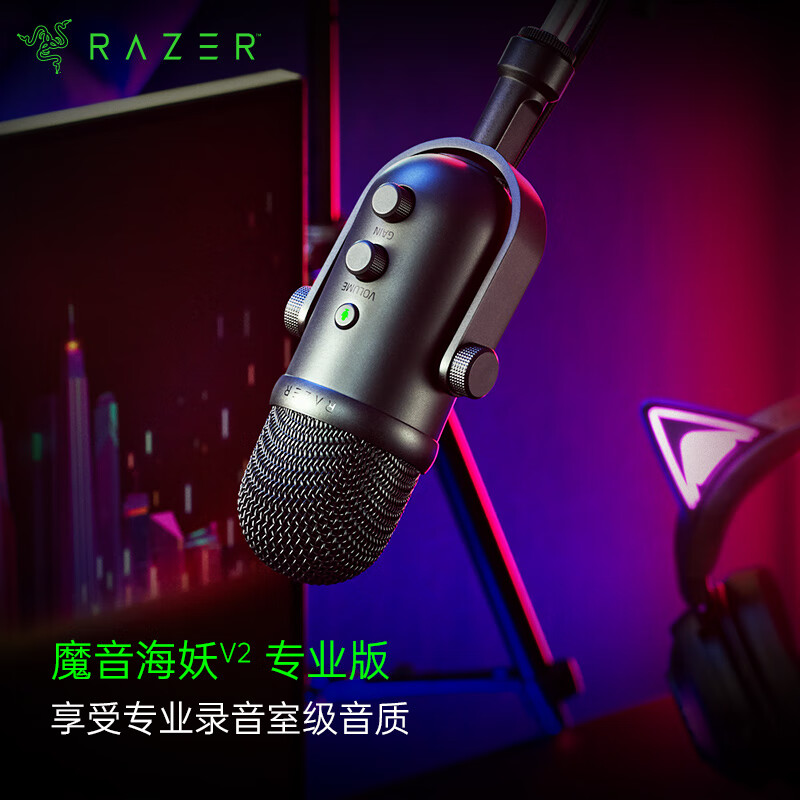雷蛇 Razer 魔音海妖V2专业版 USB 电容式直播降噪麦克风 桌面电脑K歌 游戏直播 主播推荐 录音话筒价格:999.00元!