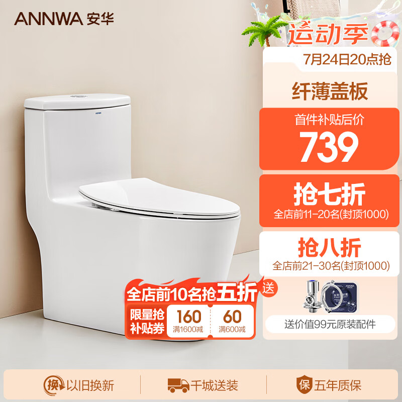 安华虹吸马桶一级水效家用抽水薄盖板普通坐便器连体坐厕NL15001AM价格:859.00元!