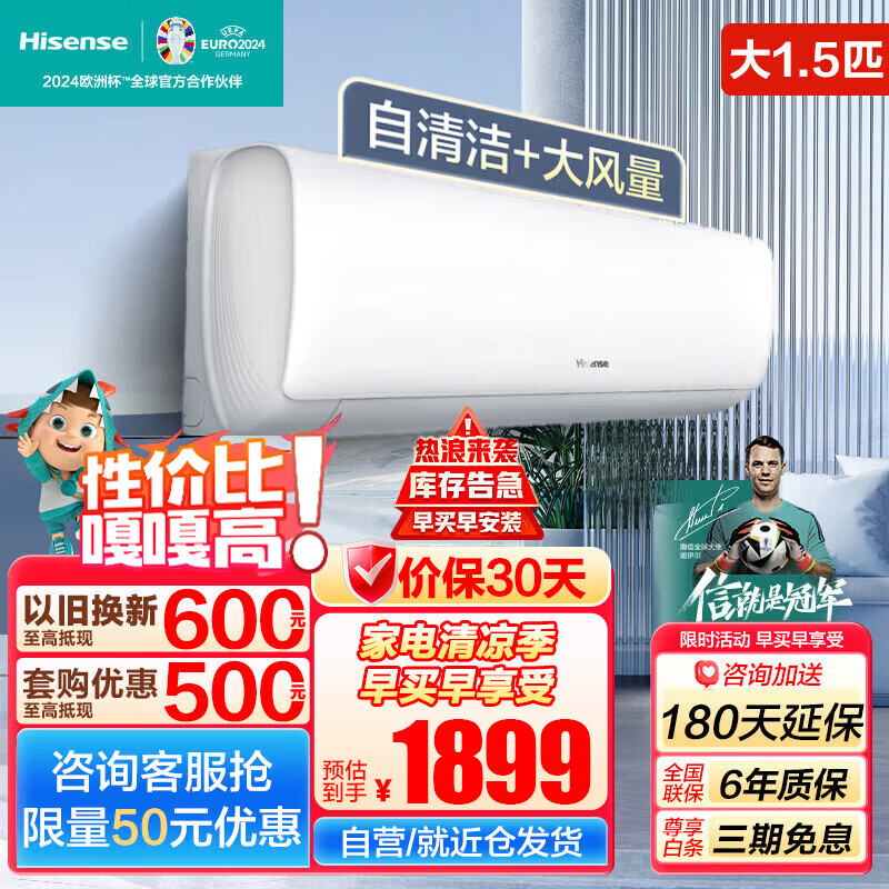 海信(Hisense)1.5匹 速冷热 新一级能效变频冷暖 高温自清洁壁挂式卧室空调挂机KFR-34GW/E270-X1价格:1899.00元!