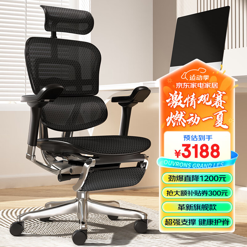 Ergonor保友金豪e2代高端人体工学椅电脑椅办公椅电竞椅子 黑色网+躺舒宝价格:4688.00元!