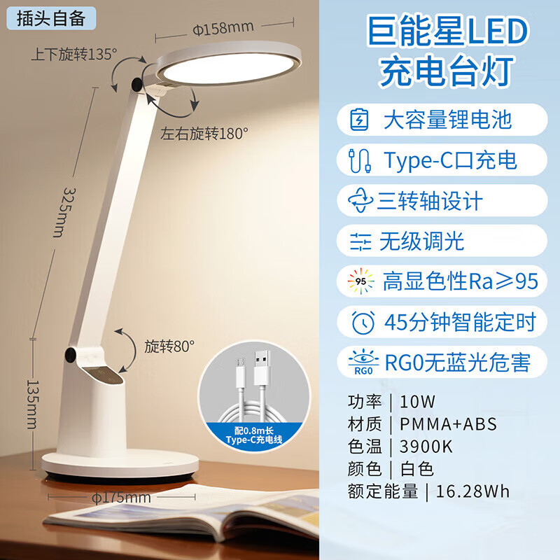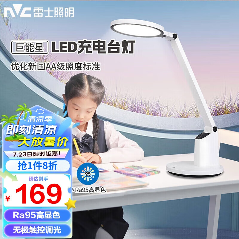 雷士(NVC) 国AA护眼宿舍卧室台灯智能学习儿童阅读灯宿舍卧室书房-充插两用价格:211.00元!