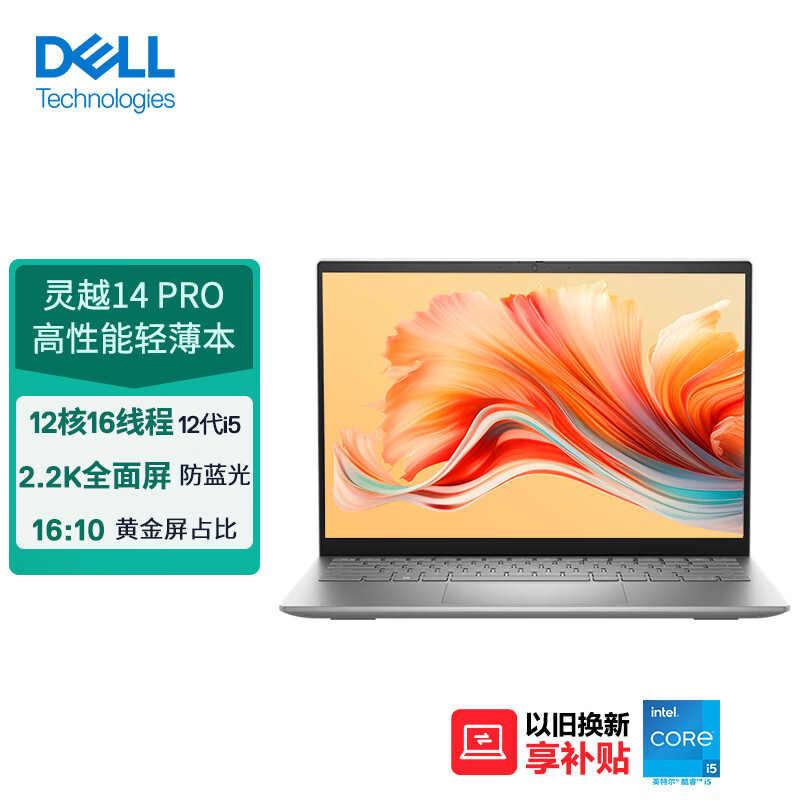 戴尔(DELL)笔记本电脑 灵越14PRO 14英寸高性能轻薄本(12代酷睿i5 512G 锐炬显卡 2.2K护眼屏)16:10屏占比 银价格:6199.00元!