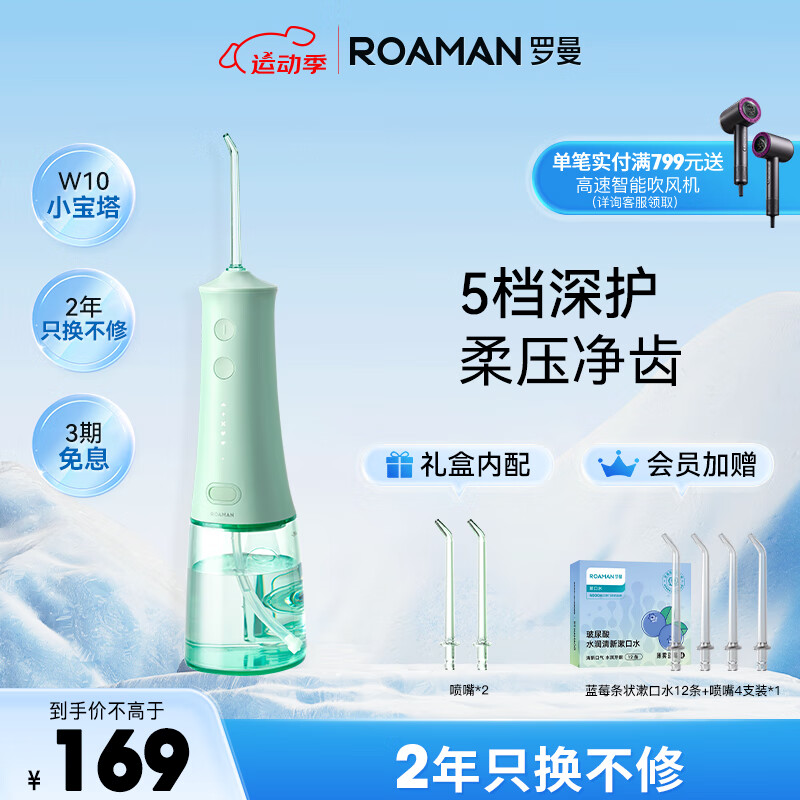 罗曼(ROAMAN)小宝塔冲牙器 洗牙器 水牙线 洁牙器 洁牙机 便携式冲牙器 台式冲牙器 W10薄荷绿价格:169.00元!
