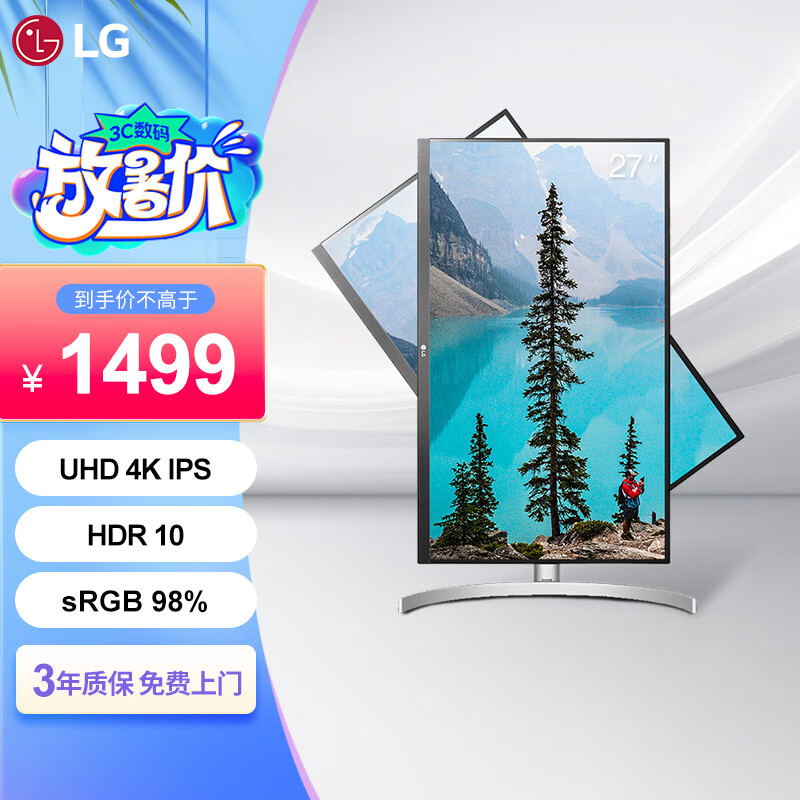 LG27英寸4K超高清 IPS 98%sRGB HDR10 升降旋转 UHD 适用PS5 办公设计显示器 27UL550 -W价格:1499.00元!