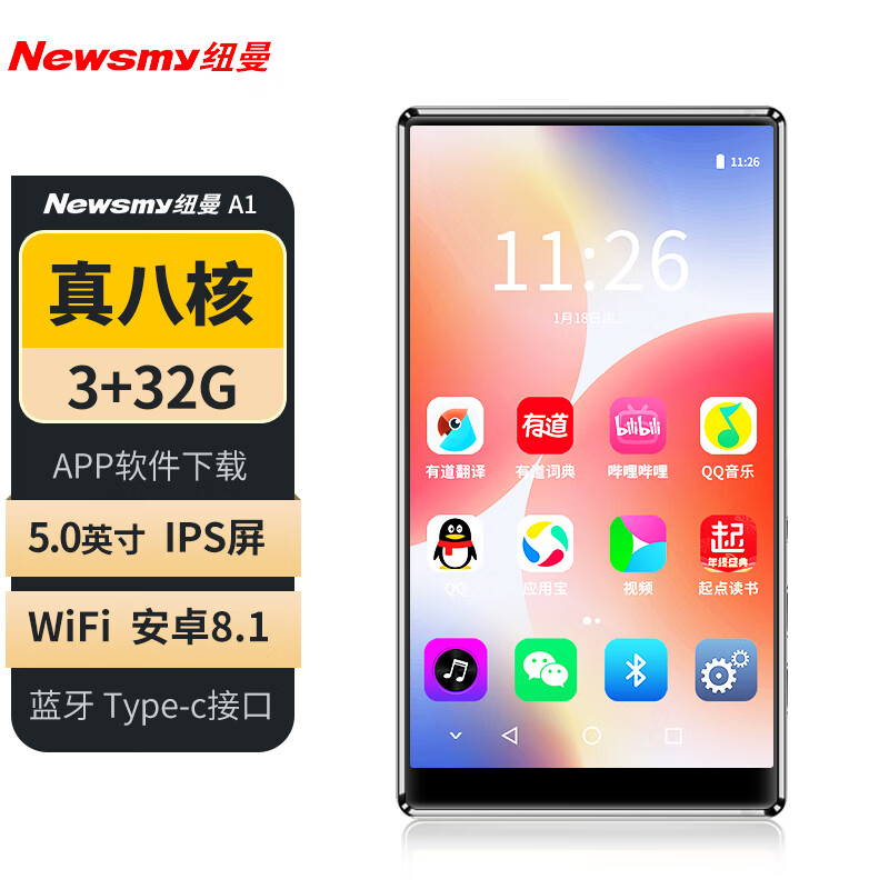 纽曼A1智能mp3/mp4 5英寸3+32G蓝牙安卓播放器WIFI可上网学生mp5随身听在线听音乐视频电子书英语听力价格:399.00元!
