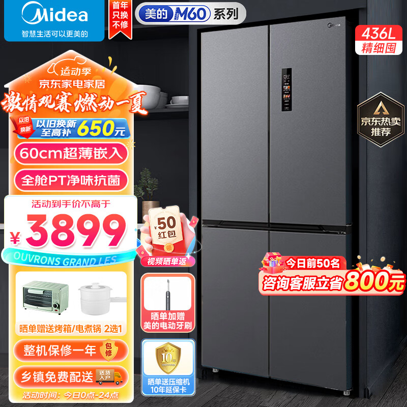 美的(Midea)M60系列457十字对开四开门冰箱超薄嵌入式家用大容量一级双变频电冰箱 MR-457WUSPZE苍穹灰价格:4698.00元!