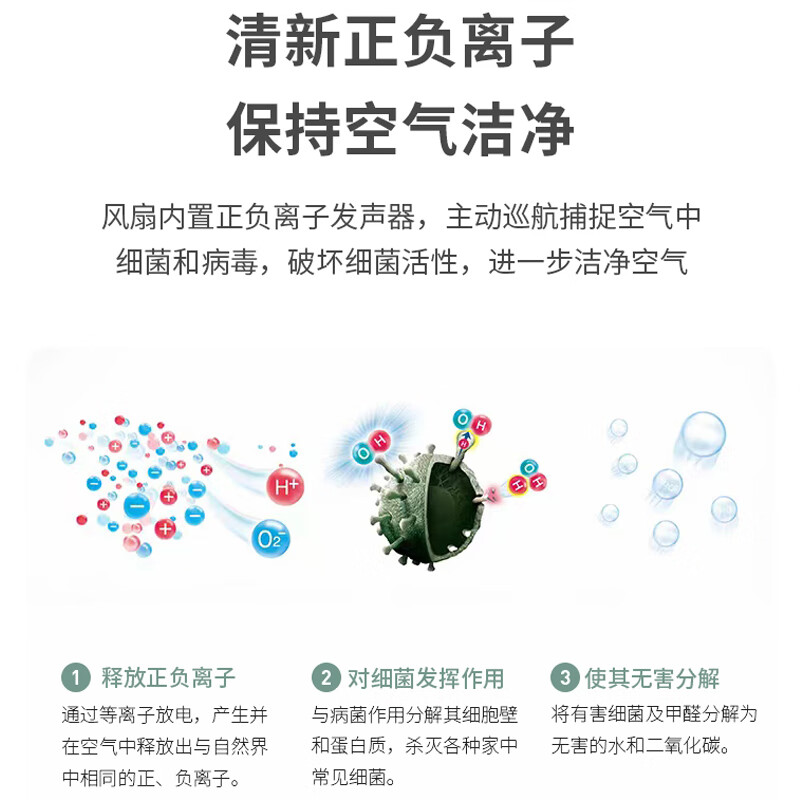 功能:负离子净化,角度可调,模拟自然风
