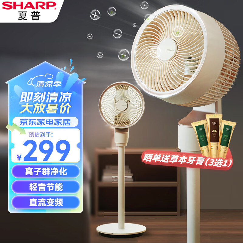 夏普(Sharp)空气循环扇/直流变频电风扇/家用遥控落地扇/纳米离子群净化轻音节能香薰驱蚊强劲对流风PJ-CD603A价格:349.00元!