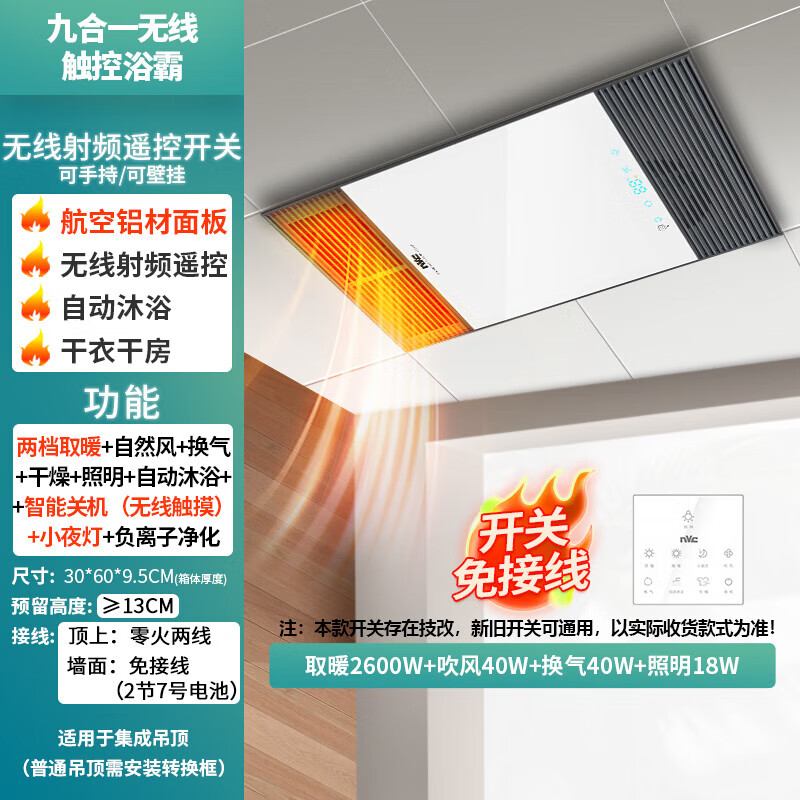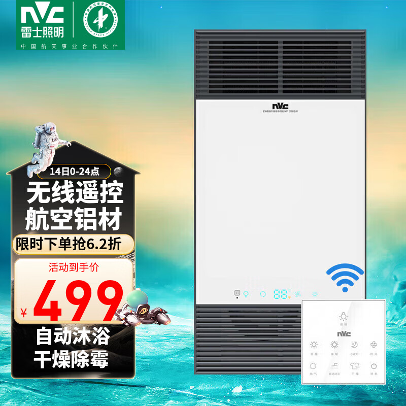 雷士(NVC)智能无线全铝面板浴霸暖风照明排气一体机卫生间浴室取暖集成吊顶价格:799.00元!