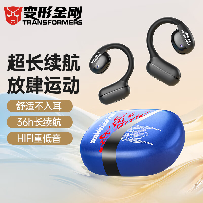 变形金刚(Transformers)蓝牙耳机挂耳式不入耳夹运动骨传导概念开放式真无线游戏电竞音乐跑步专用ows降噪适用苹果华为-蓝价格:149.90元!