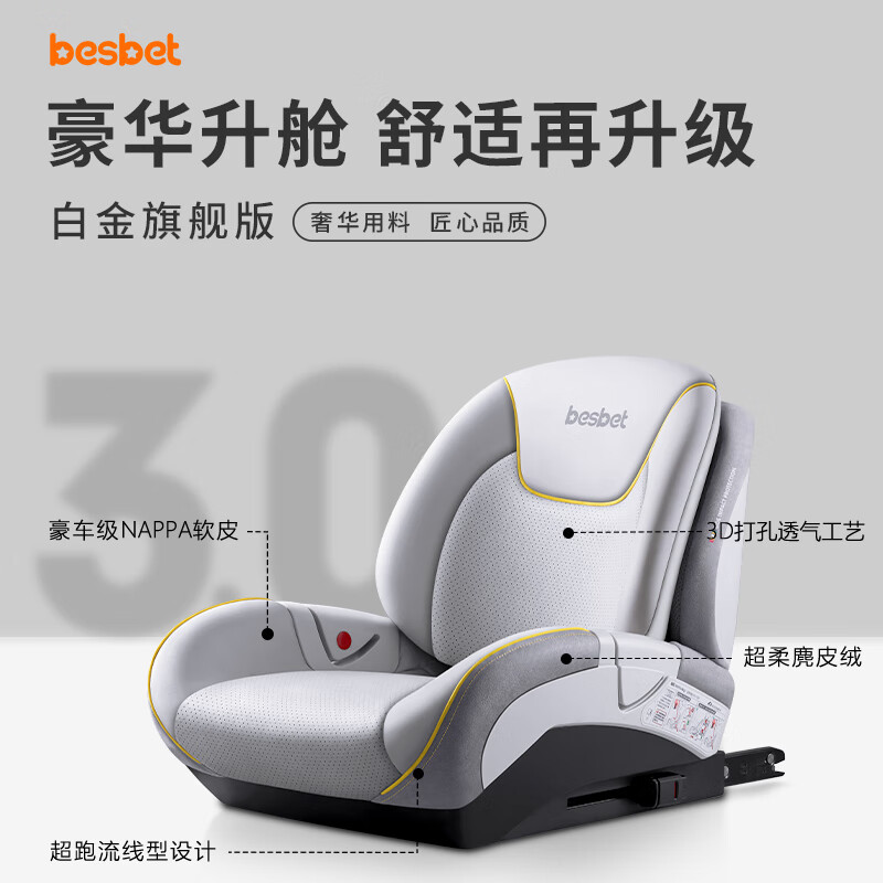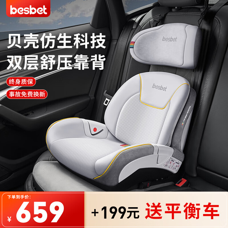 贝思贝特(besbet)儿童座椅3-12岁大童汽车用宝宝便携式简易增高垫 骑士灰价格:759.00元!