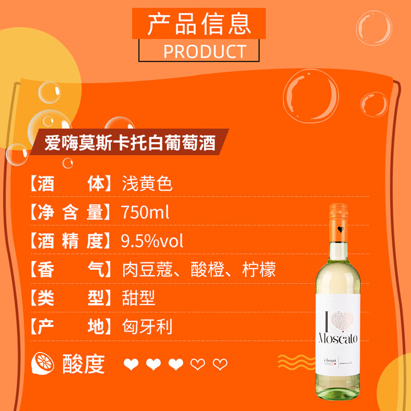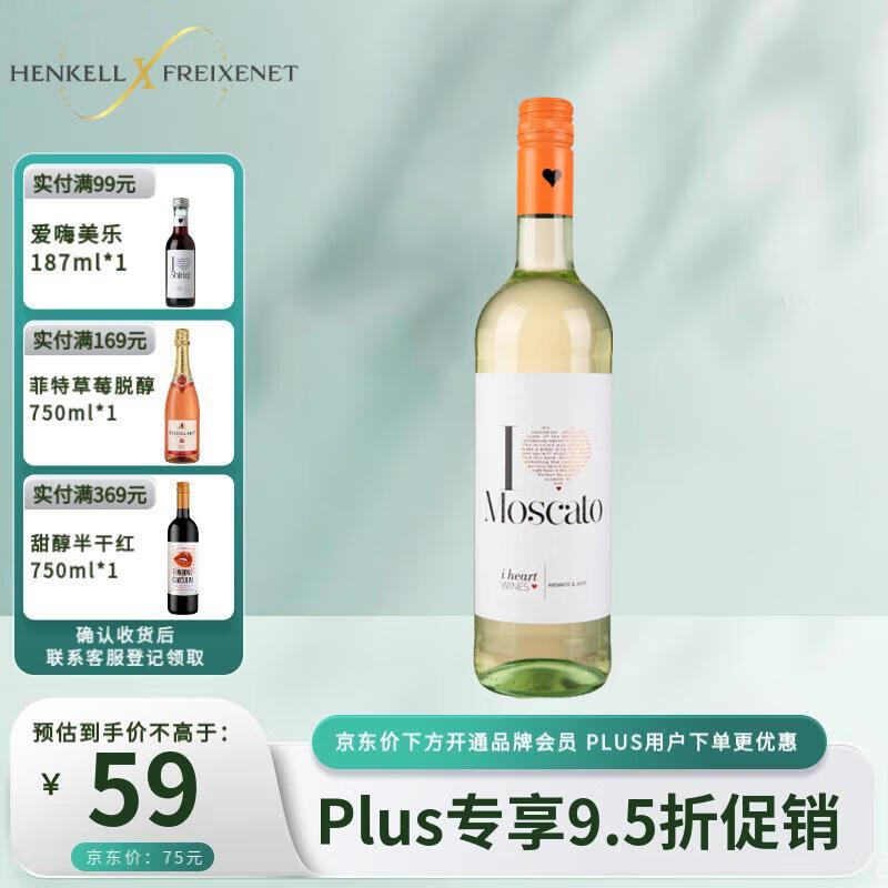 汉凯(Henkell)爱嗨莫斯卡托甜型白葡萄酒750ml 单瓶装 匈牙利进口价格:55.00元!