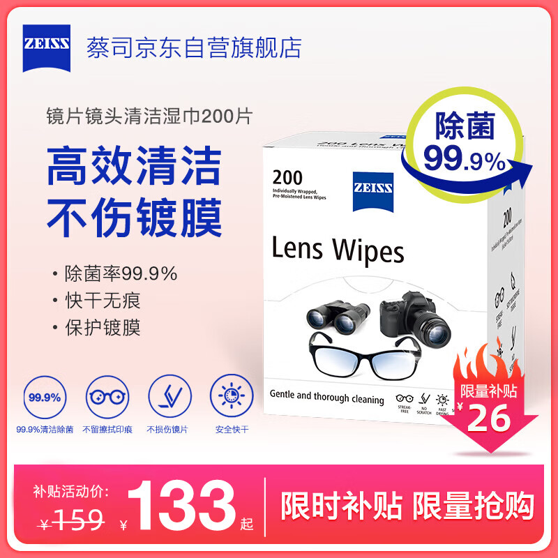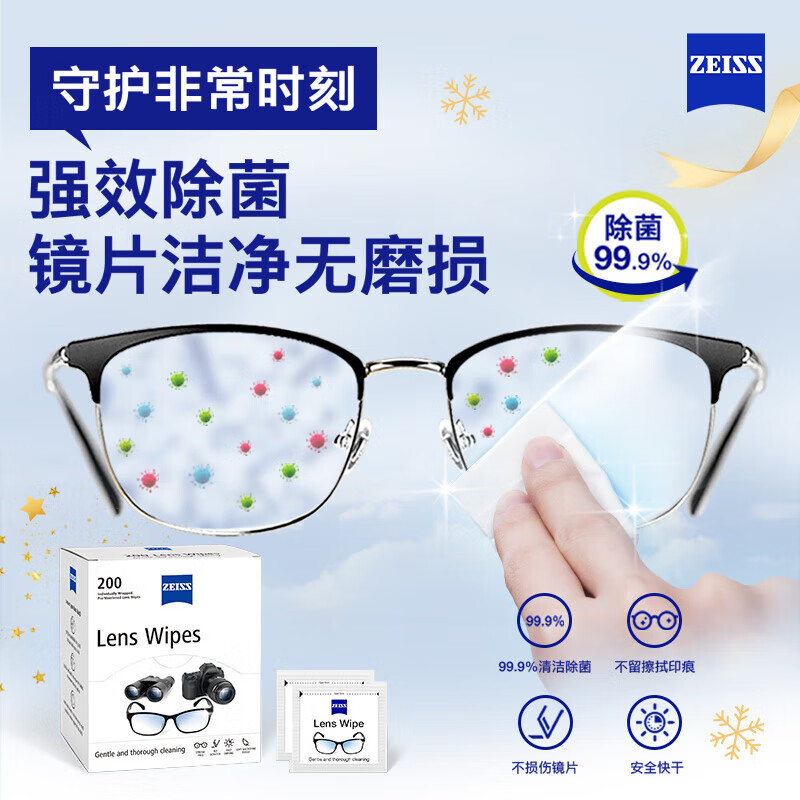 zeiss蔡司 专业光学拭镜纸 擦镜纸 眼镜 相机镜头 镜片清洁湿巾 清洁湿纸巾 200片装价格:159.00元!