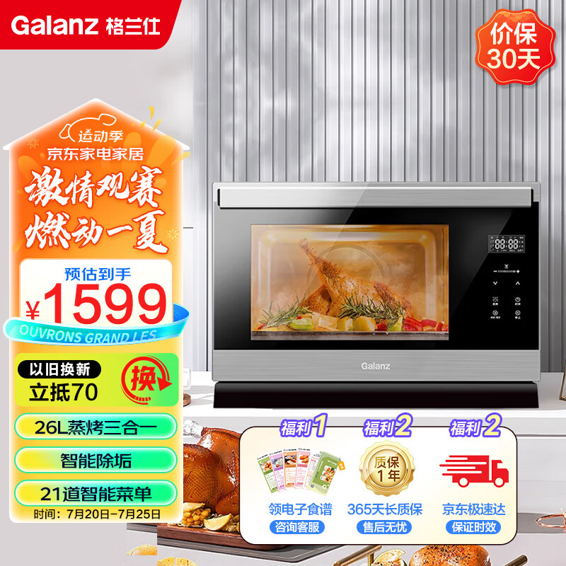 格兰仕(Galanz)电烤箱家用蒸烤箱26L多功能台式蒸烤一体机不锈钢内胆烘焙烧烤蒸箱烤箱二合一D22价格:1599.00元!