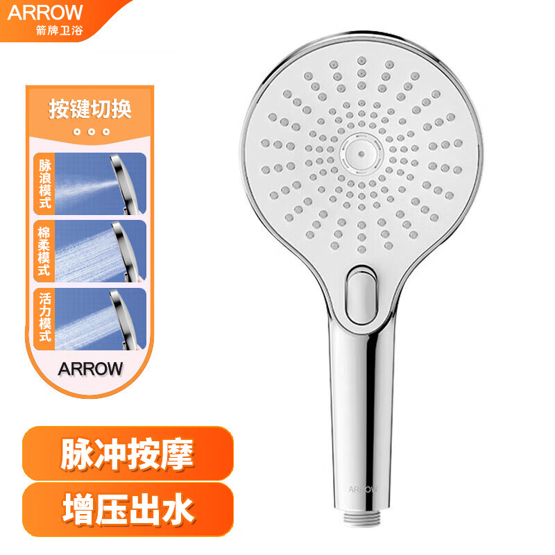 箭牌(ARROW)脉冲增压手持花洒易洁除垢AE58119CP价格:119.00元!