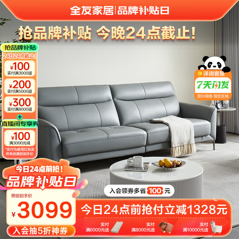 全友家居 真皮沙发 现代简约小户型双人轻奢风直排皮艺沙发客厅102710价格:4427.14元!