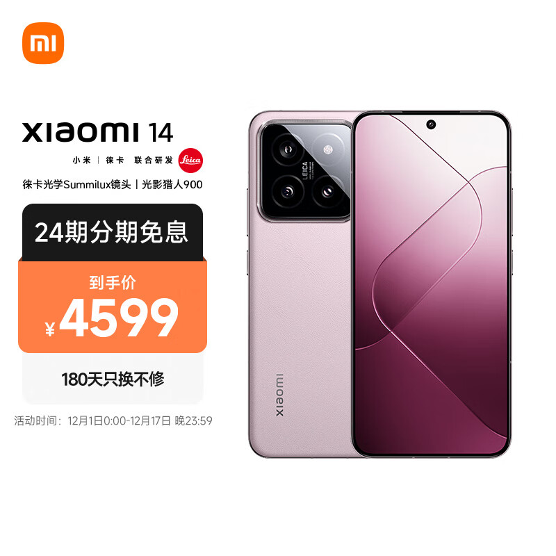 小米14 徕卡光学镜头 光影猎人900 徕卡75mm浮动长焦 骁龙8Gen3 16+512 雪山粉 小米手机 红米手机 5G价格:4599.00元!