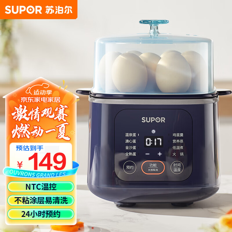 苏泊尔(SUPOR)煮蛋器 蒸蛋器 电蒸锅煮鸡蛋神器 微电脑预约可定时自动断电 家用蒸鸡蛋溏心蛋多用途锅 Z15FC856价格:149.00元!