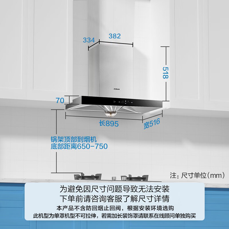 烟机安装尺寸:900±50mm