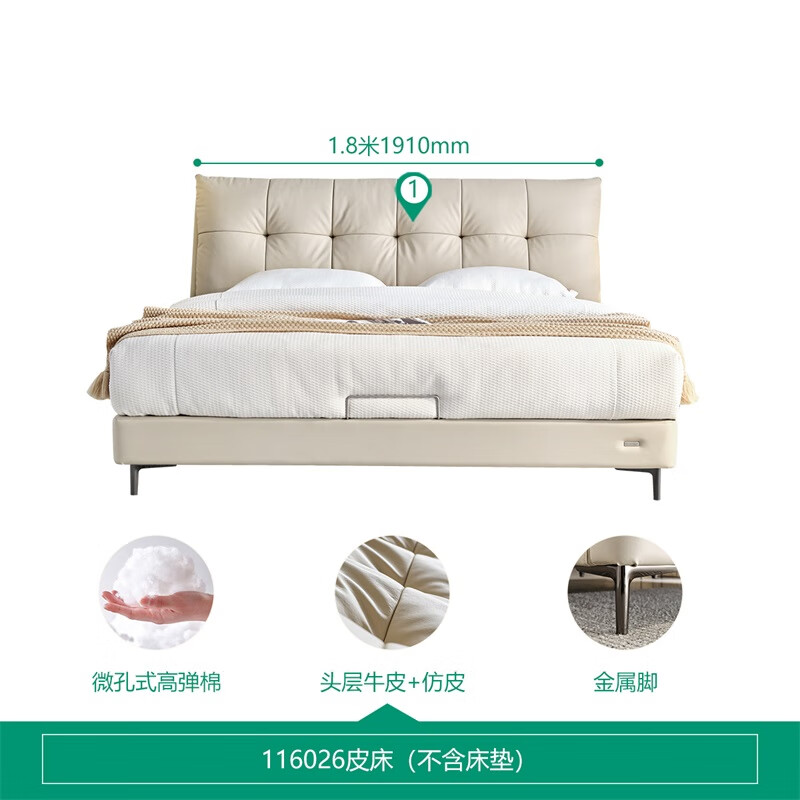 全友家居 真皮床舒适拉点靠包皮艺床双人床1.8米卧室床睡眠家具116026价格:2299.00元!