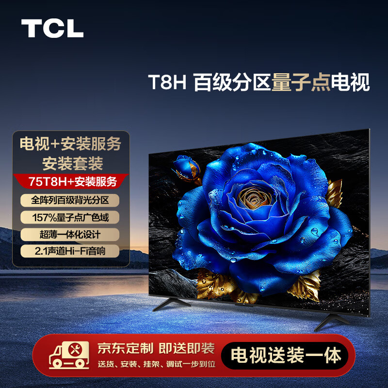 TCL【送装一体版】安装套装-75T8H 75英寸 百级分区量子点电视 T8H+安装服务含挂架价格:4498.00元!