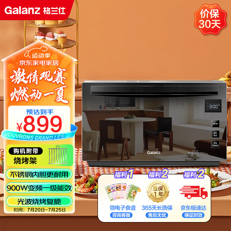 格兰仕(Galanz)微烤一体机23L900W微波炉家用一级能效平板加热变频下拉门微波炉烤箱一体机A7(B3)价格:899.00元!