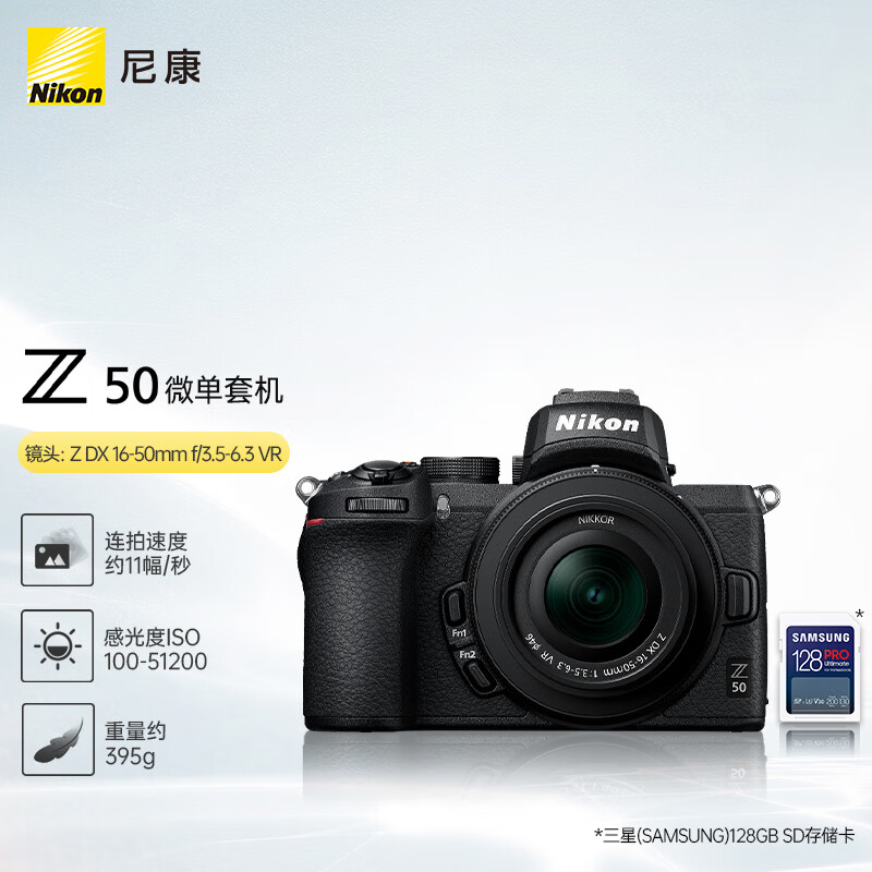 尼康(Nikon)Z 50微单相机半画幅(尼克尔 Z DX 16-50mm f/3.5-6.3 VR)+128GB储存卡价格:7178.00元!