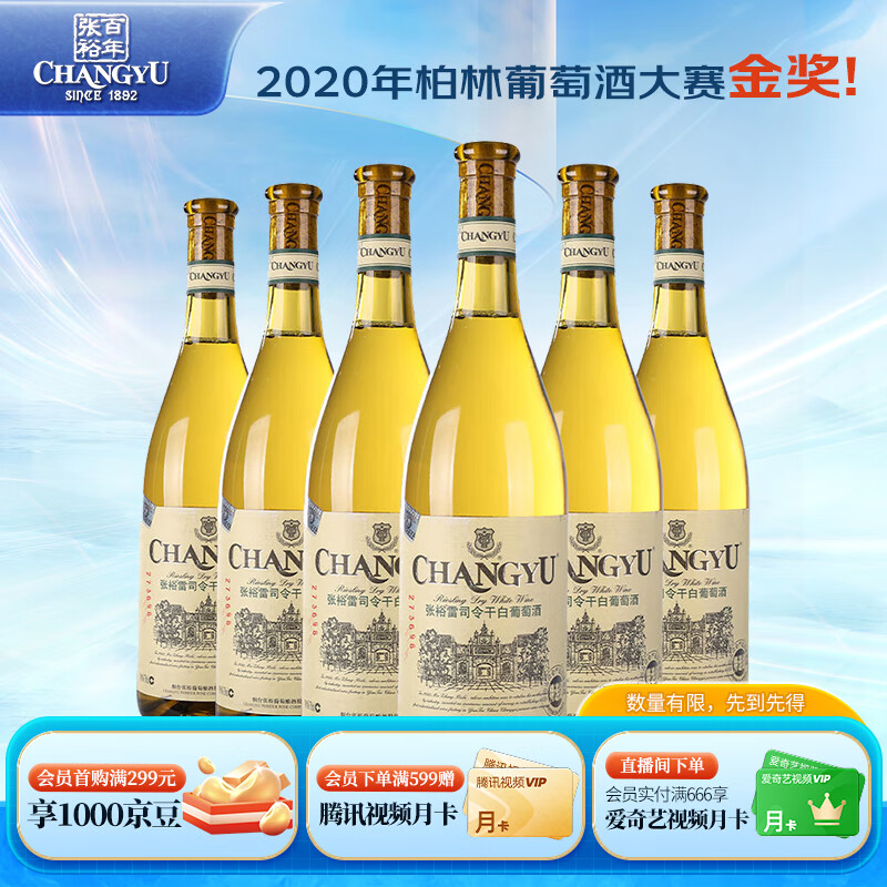 张裕 特选级雷司令干白葡萄酒 750ml*6整箱装国产红酒价格:714.40元!