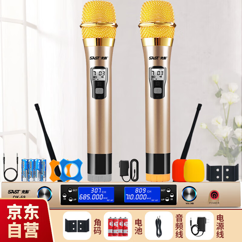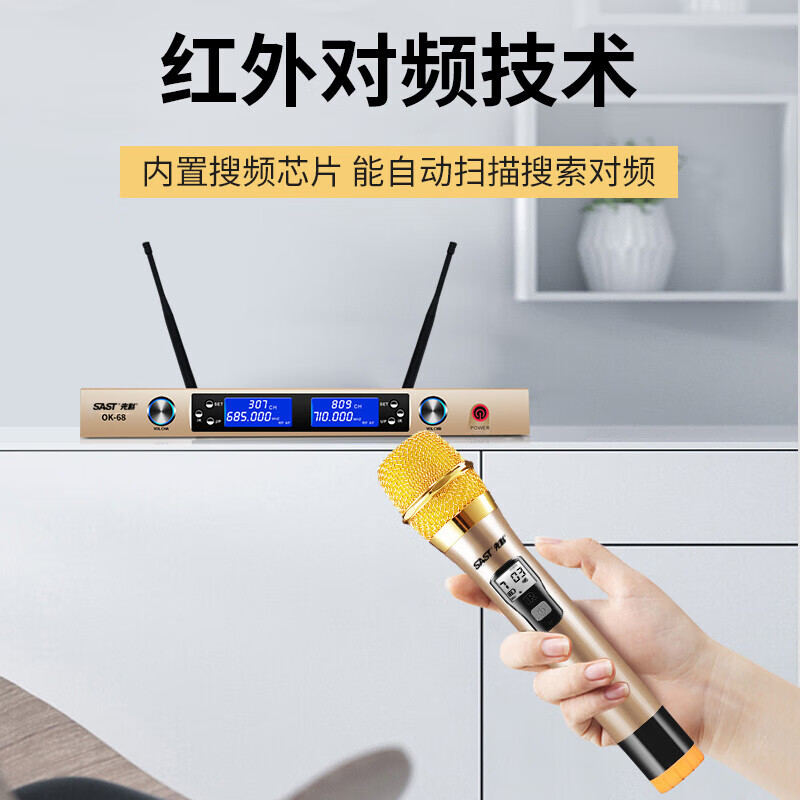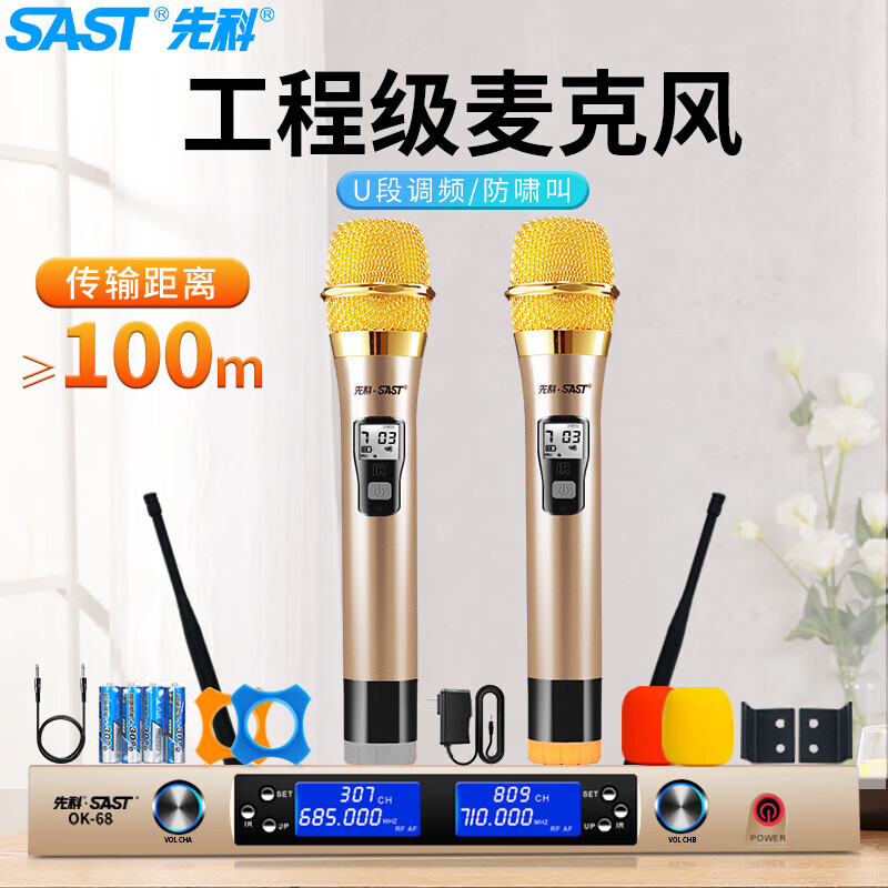 先科(SAST)OK-68 无线话筒 一拖二 U段可调频 无线麦克风专业K歌麦克风家庭KTV演唱会议主持话筒价格:699.00元!