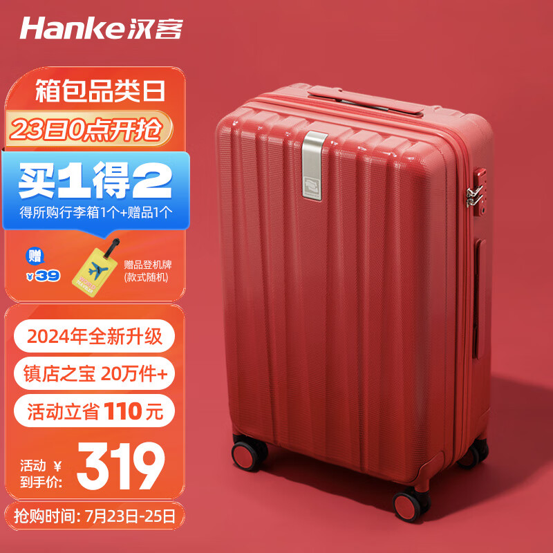 汉客结婚陪嫁红色行李箱拉杆箱女登机旅行箱20英寸枫叶红婚箱再次升级价格:429.00元!
