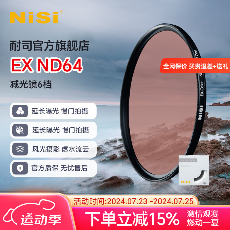 耐司(NiSi) ND1000减光镜ND64 ND8 中灰密度镜全系口径nd镜适用于佳能索尼风光摄影 EX ND64(减6档) 67mm价格:145.00元!