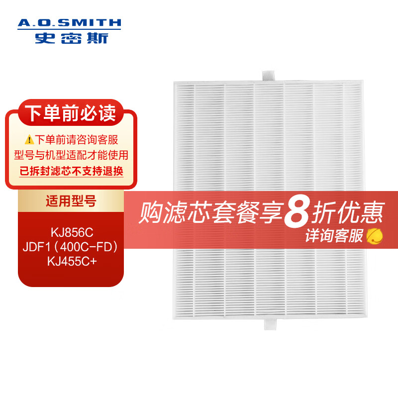 史密斯(A.O.SMITH)空气净化器甲醛净化器预过滤初滤网滤芯 PF-003(S)适用于KJ856C/JDF1(400C-FD)/KJ455C+【配件】价格:138.00元!