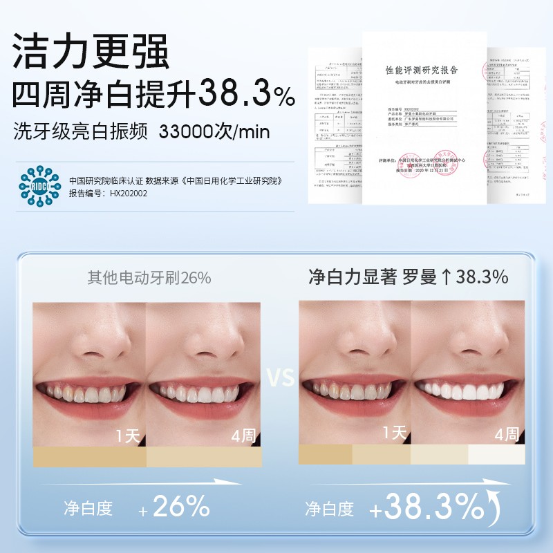 特征特质:美白认证刷头,感应,立体清洁,定时,过压提醒
