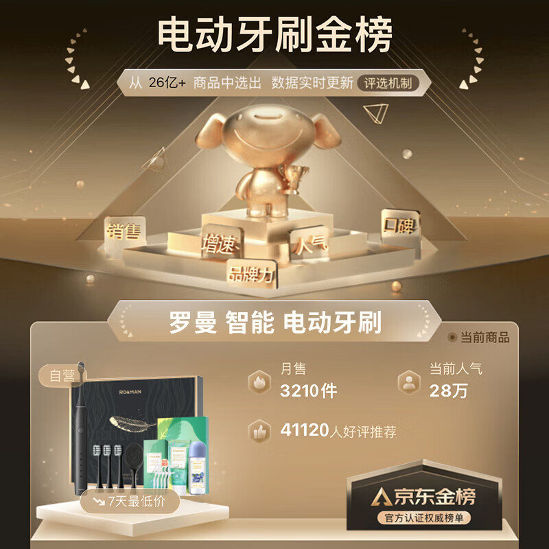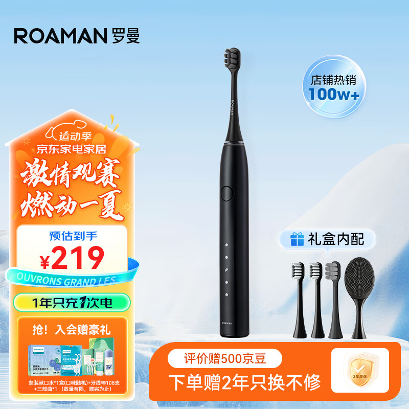 罗曼(ROAMAN)智能声波电动牙刷情侣款生日礼物 5种模式牙医推荐 网红小果刷1年续航 冷酷椰灰款价格:269.00元!