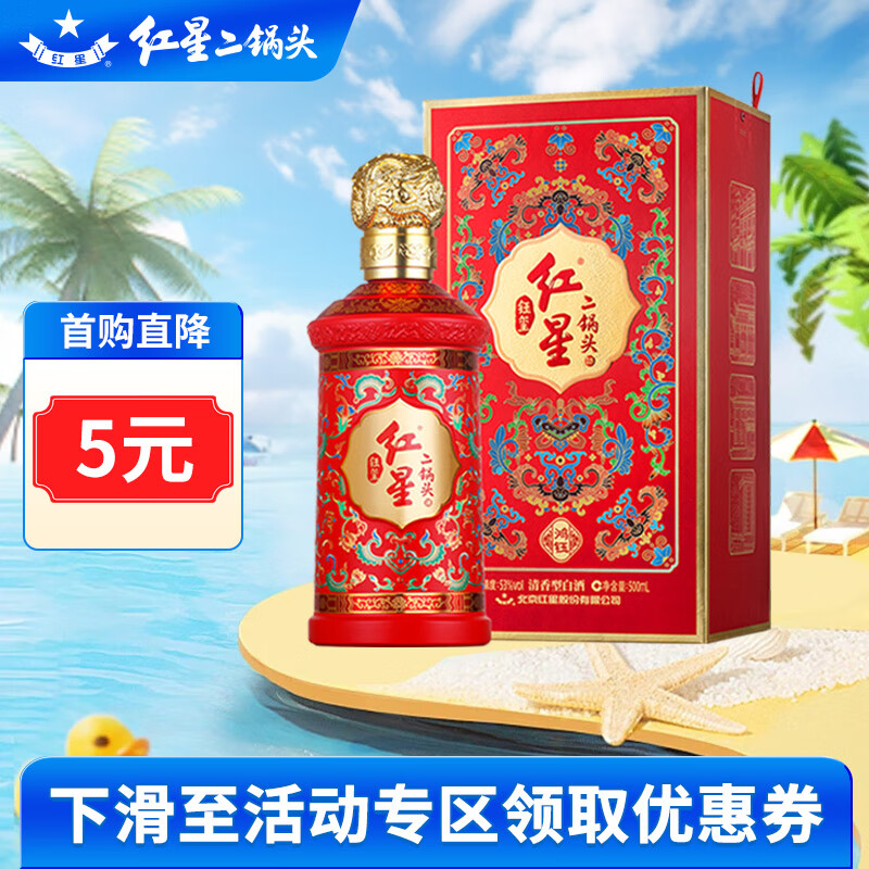 红星二锅头 钰玺-鸿钰 清香型白酒 53度500ml 单瓶装 送礼佳选价格:388.00元!