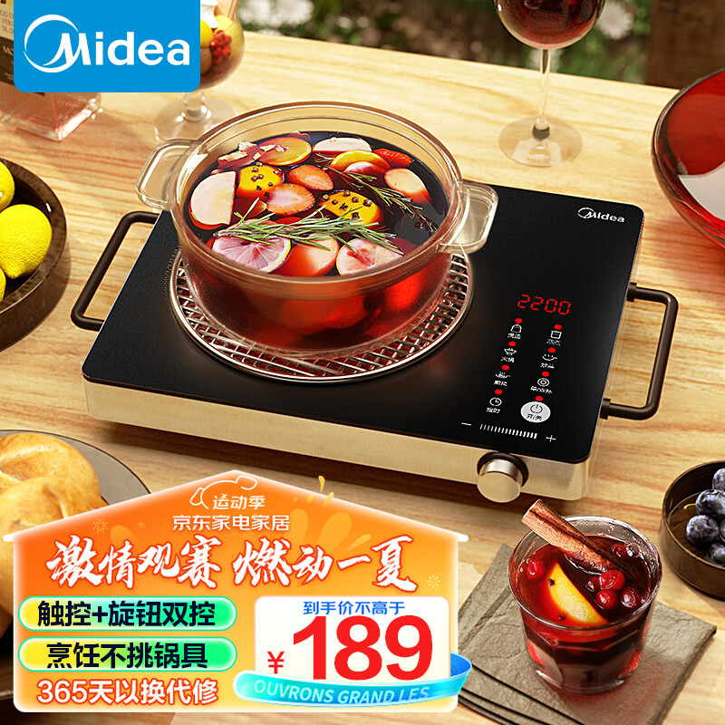美的(Midea)电磁炉 电陶炉 家用煮茶火锅旋控2200W大火力电磁灶双环控火 智能定时 H22-HST2208价格:199.00元!