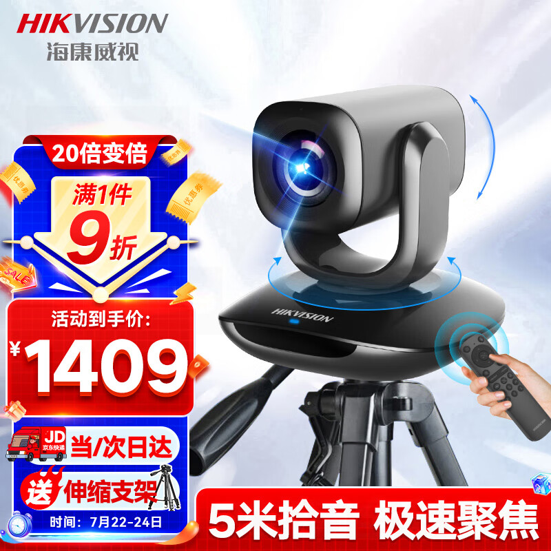 HIKVISION海康威视 视频会议摄像头直播1080P高清摄像头麦克风自动变焦遥控云台远程视频会议直播UVC-V102价格:1577.80元!