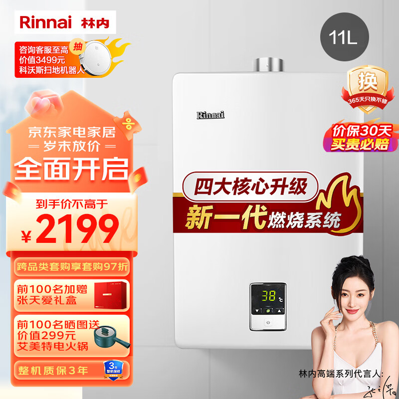 林内(Rinnai) 01系列 11升燃气热水器 天然气 变频恒温 水气双调 强排式 家用JSQ22-C01价格:2089.00元!