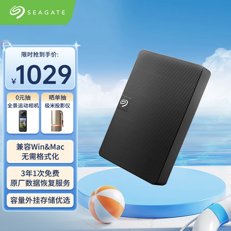 希捷(SEAGATE)移动硬盘 5TB USB3.0高速 希捷睿翼 2.5英寸 机械硬盘 便携 黑 兼容mac 外接存储 数据恢复服务价格:1029.00元!