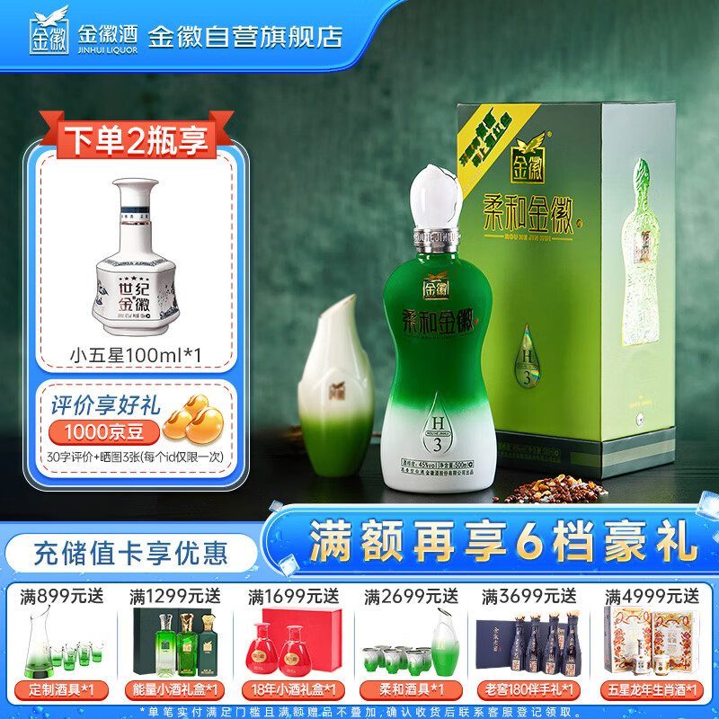 金徽 柔和H3 浓香型白酒 45度 500ml 单瓶装价格:176.00元!
