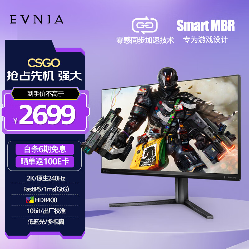 飞利浦 31.5英寸2KFastIPS 原生240Hz1ms快速液晶 HDR400出厂校准 10bit EVNIA游戏电竞显示器32M2N5500P价格:2699.00元!