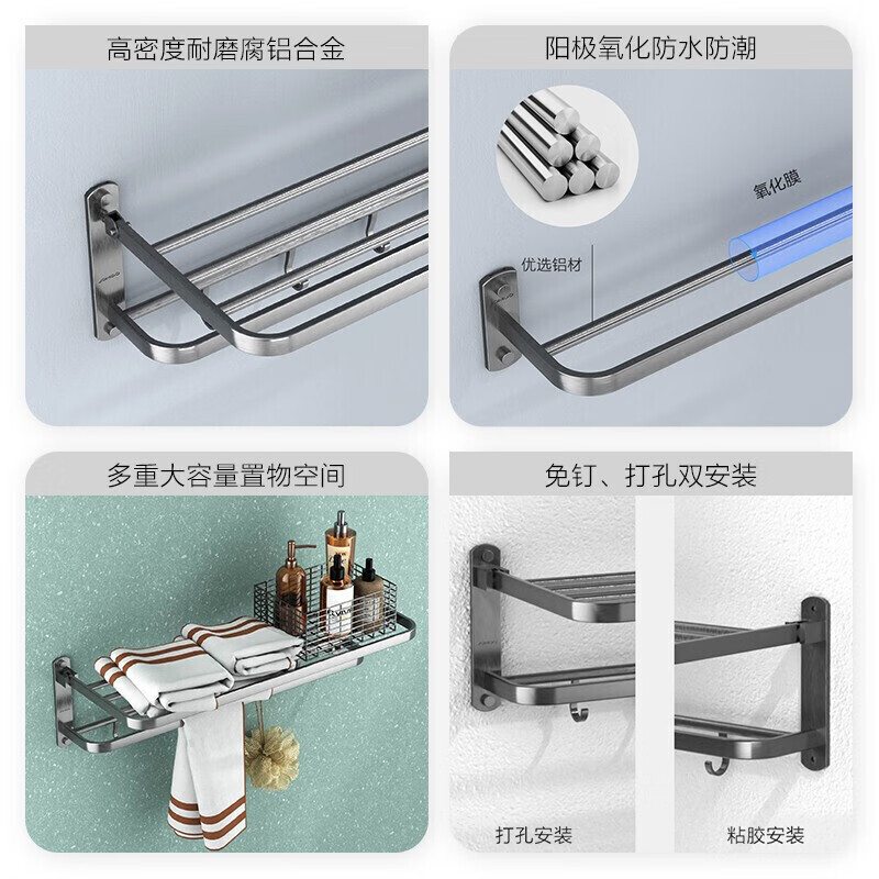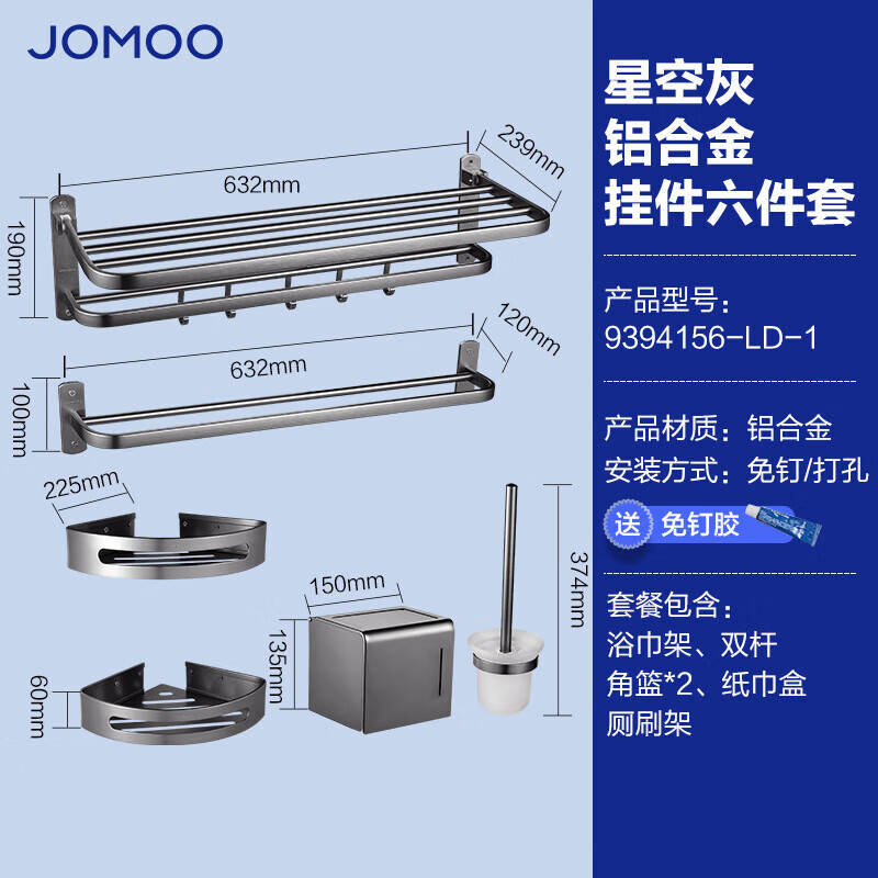 九牧(JOMOO)铝免打孔挂件套装毛巾架卫浴挂件浴巾架置物架9394156-LD-1价格:399.00元!