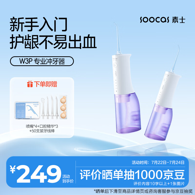 素士 SOOCAS 便携立式冲牙器 水牙线 洗牙器 预防牙结石洁牙器礼盒 W3pro紫 送女友 七夕情人节礼物价格:299.00元!