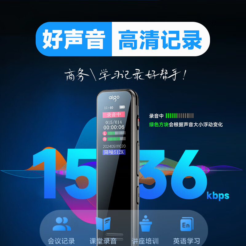 爱国者 aigo录音笔R3315C 32G一键录音专业普及型高清降噪 学习培训商务会议采访 录音器 MP3播放 灰色价格:189.00元!