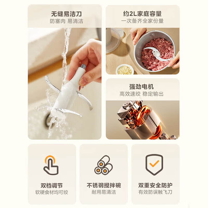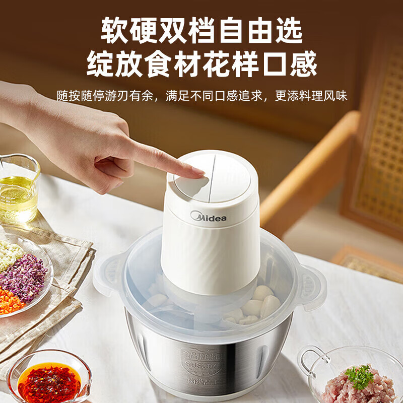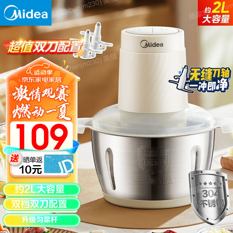 美的(Midea) 绞肉机家用绞馅机碎肉机打肉机饺子肉馅电动多功能料理机搅拌机切菜婴儿辅食机 JC13B【不锈钢杯身+双刀配置】 1.8L价格:199.00元!