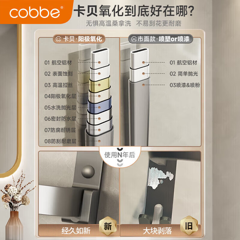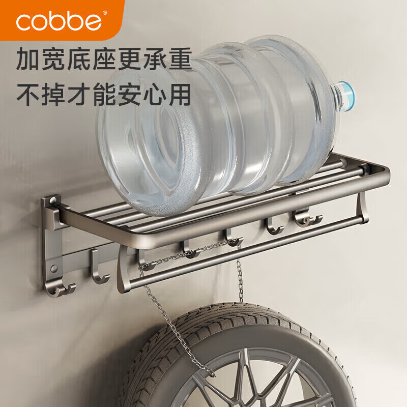 卡贝(cobbe)浴室毛巾架免打孔枪灰色太空铝卫生间置物架厕所洗手间浴巾架套装价格:318.00元!