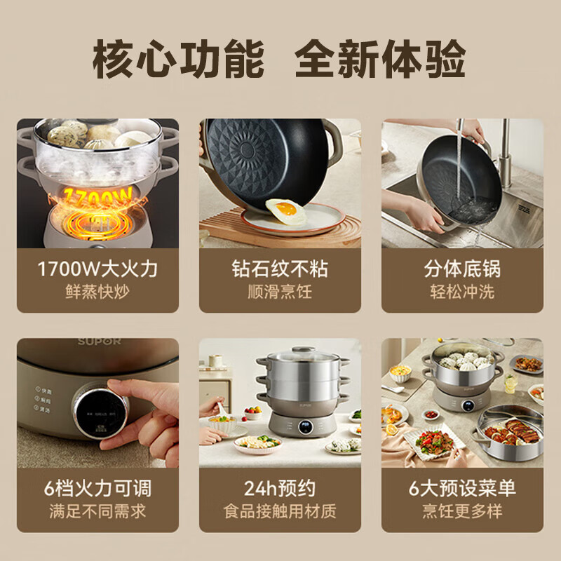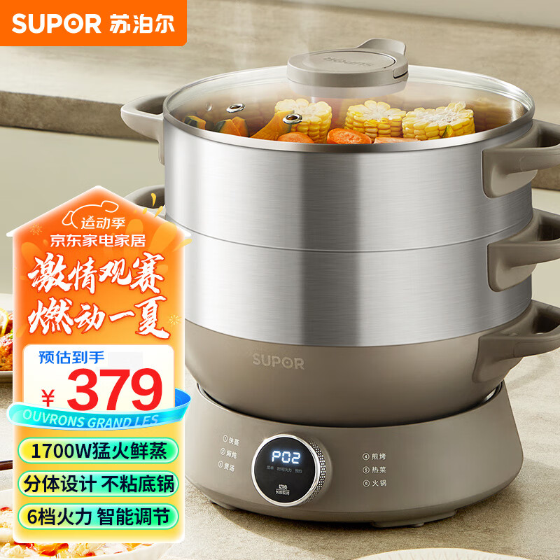 苏泊尔(SUPOR)多用途锅电蒸锅多功能家用定时电火锅蒸包子锅电煮锅三层大容量分体式可拆洗 ZN30YC827价格:379.00元!