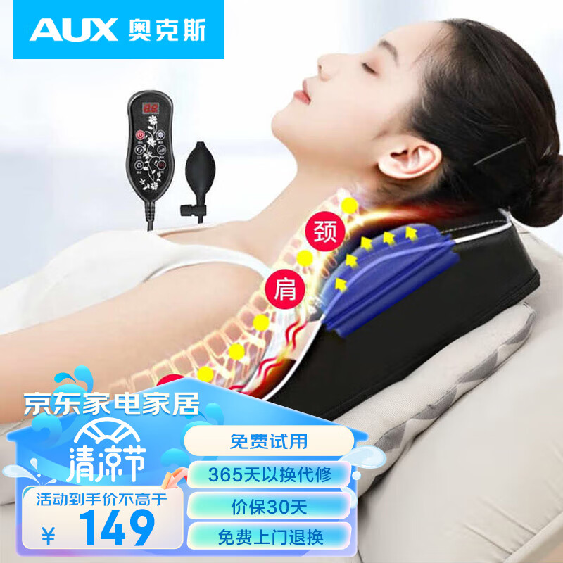 奥克斯(AUX)颈椎按摩器按摩枕GL-26Z 热敷款背部腰部按摩仪枕头 头部肩颈护颈仪靠枕 节日送礼 礼物 送父母价格:149.00元!